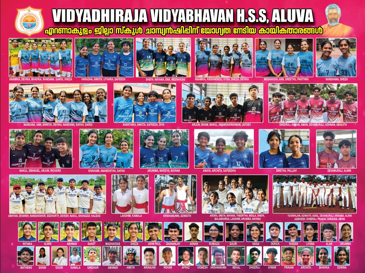 Vidyadhiraja Vidyabhavan Higher Secondary School is a prestigious institution located in Aluva, near Cheeerakkada Temple . Established in 1973, this school has been a beacon of academic excellence, consistently achieving a 100% pass rate across its high school and higher secondary classes. Known for its commitment to quality education and holistic development, Vidyadhiraja Vidyabhavan has made a lasting impact on students and the broader community through value-based learning and a strong emphasis on character building. With a dedicated team of faculty and staff, the school continues to uphold its tradition of excellence, preparing students to excel both academically personally and physically through its various activities.